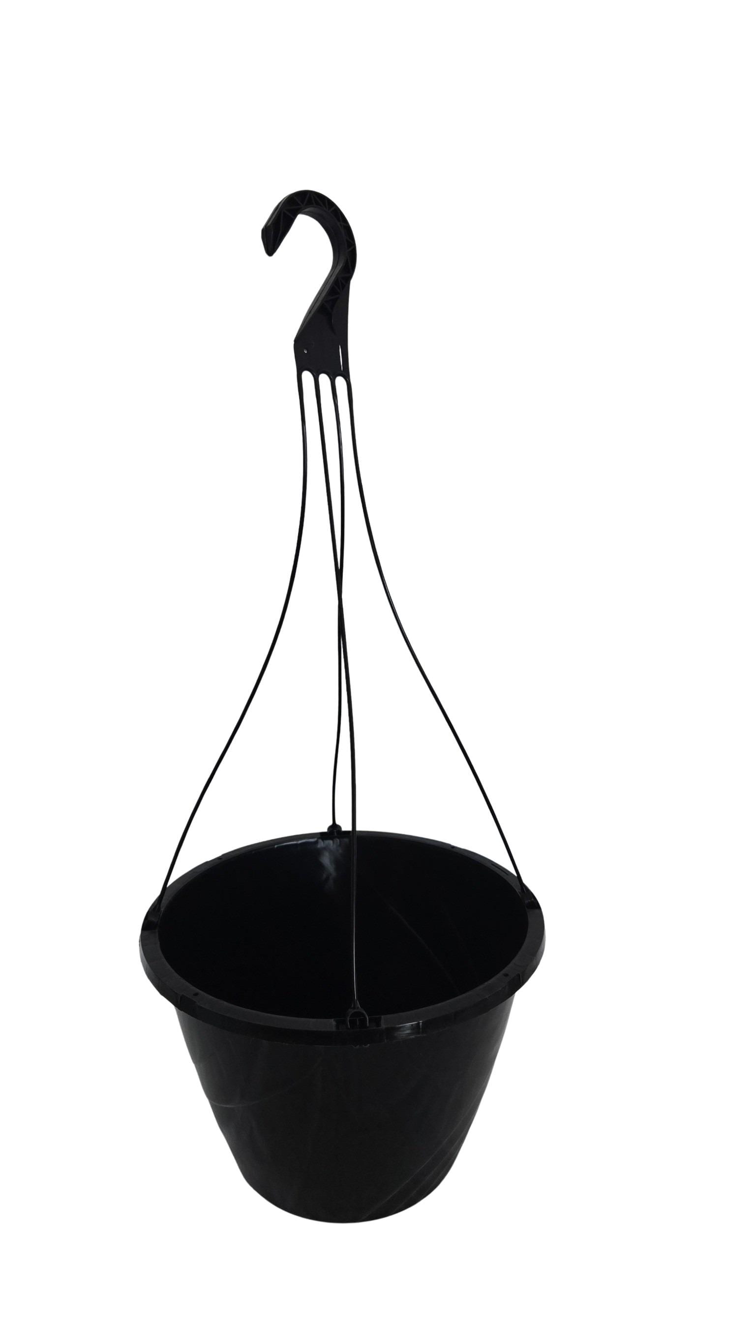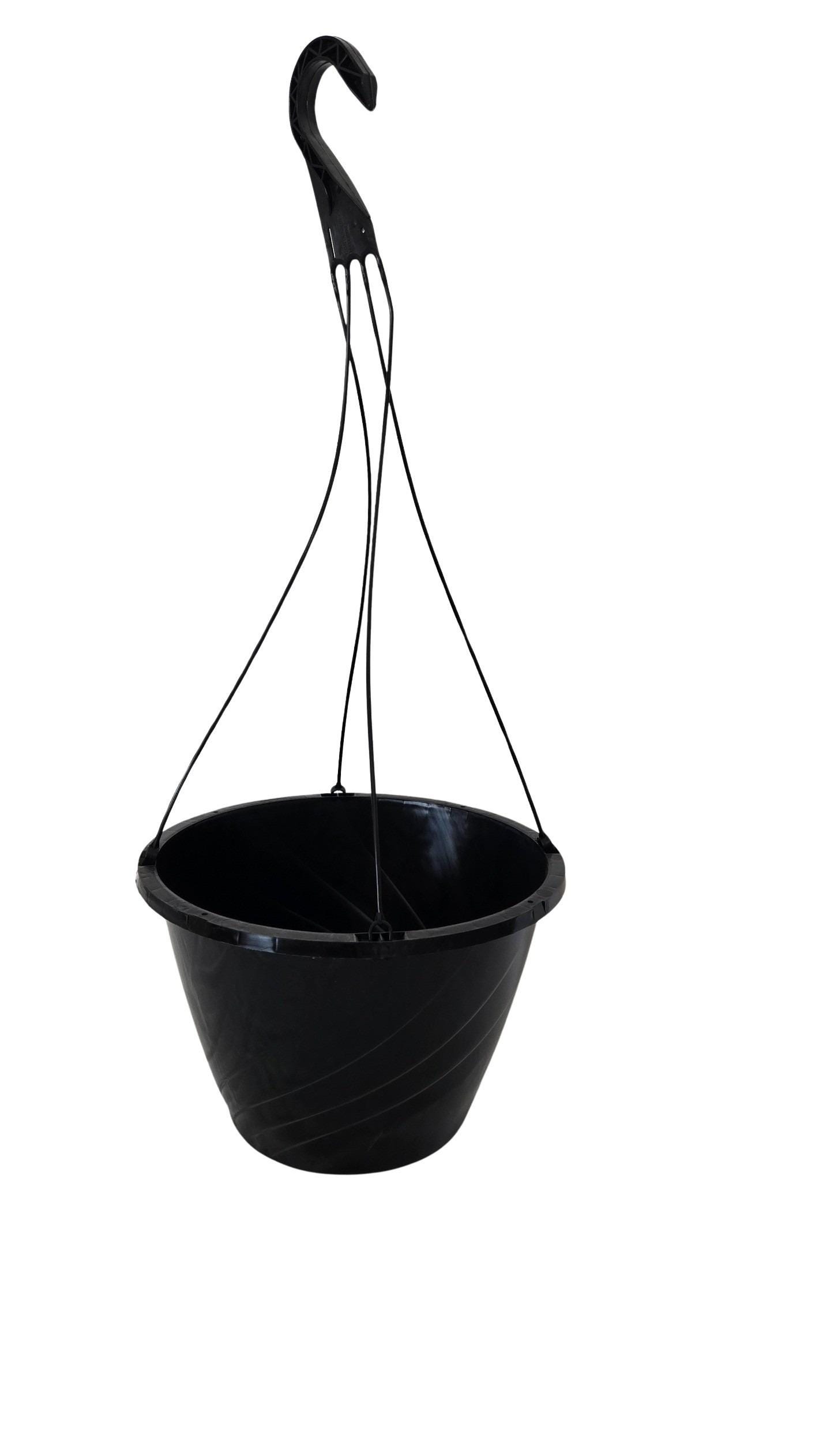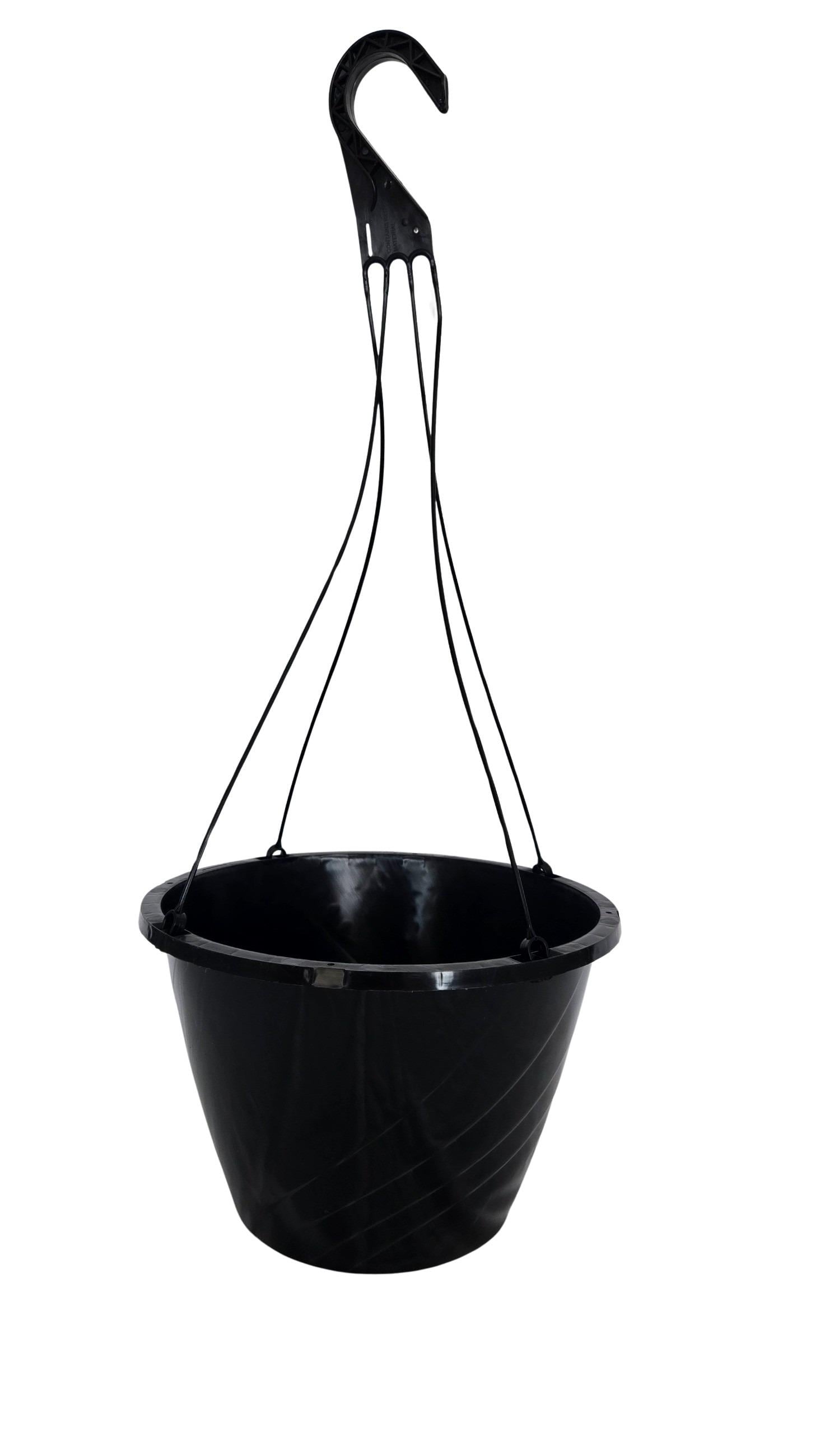 Set of new black plastic hanging baskets