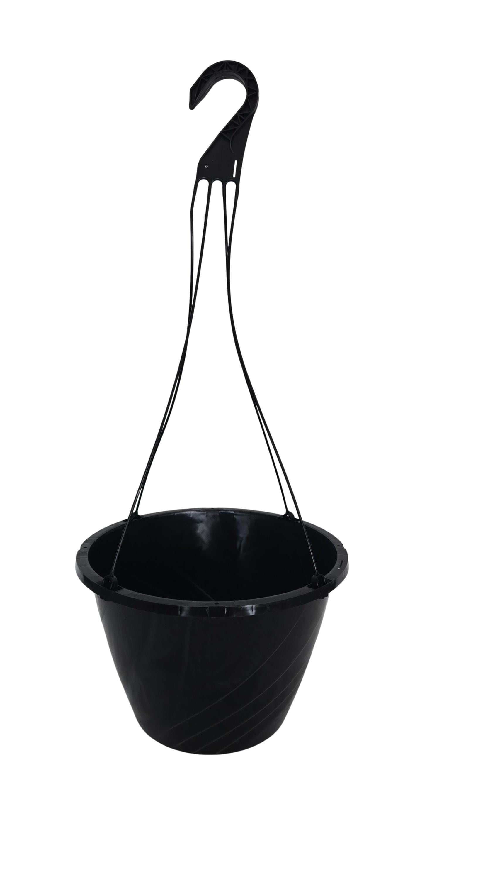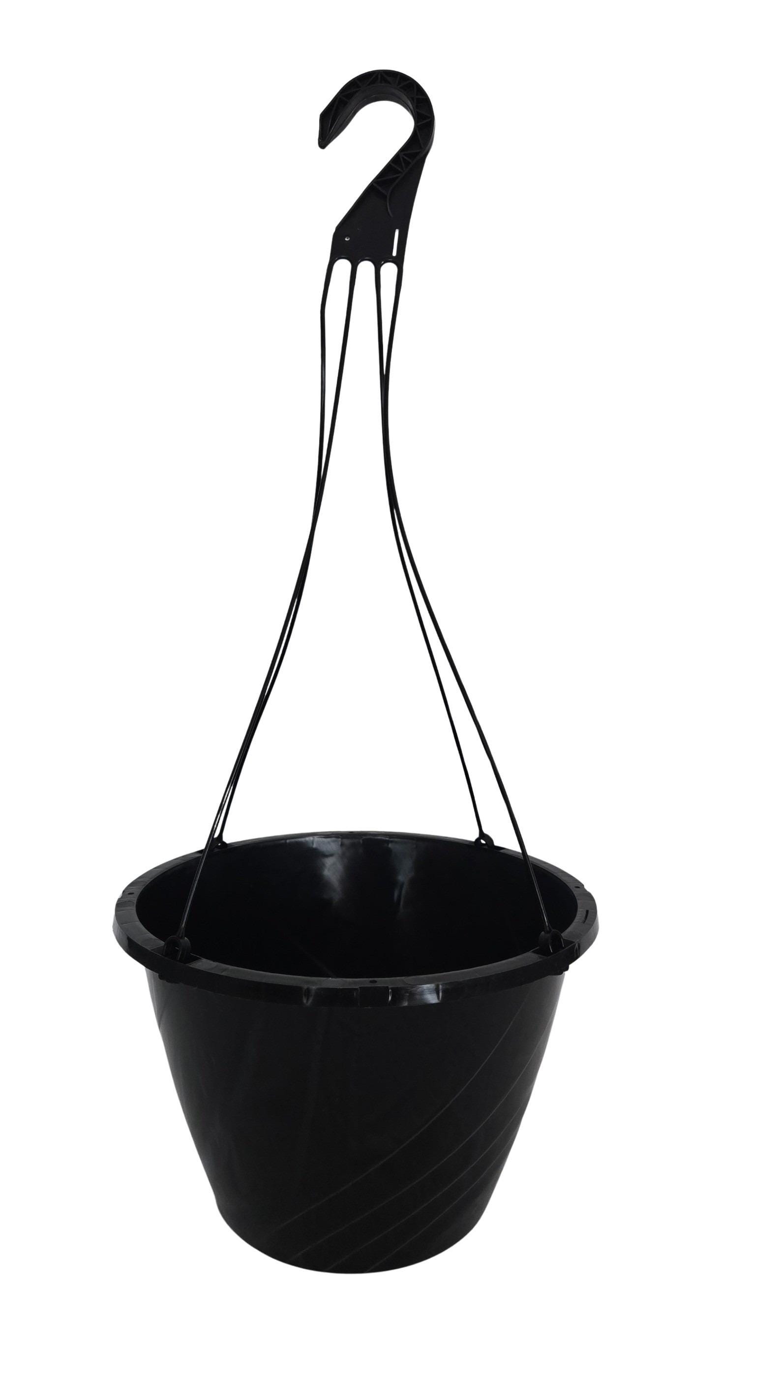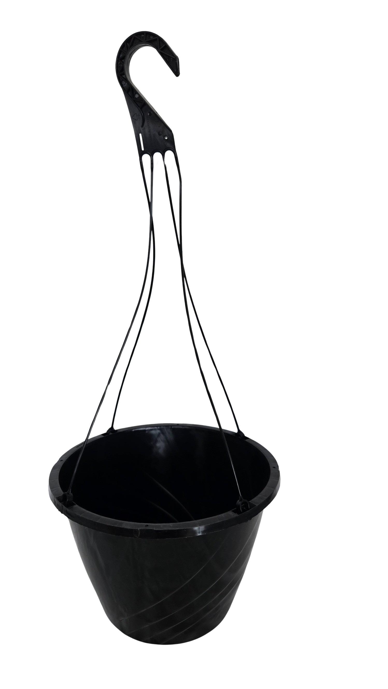 Set of new black plastic hanging baskets