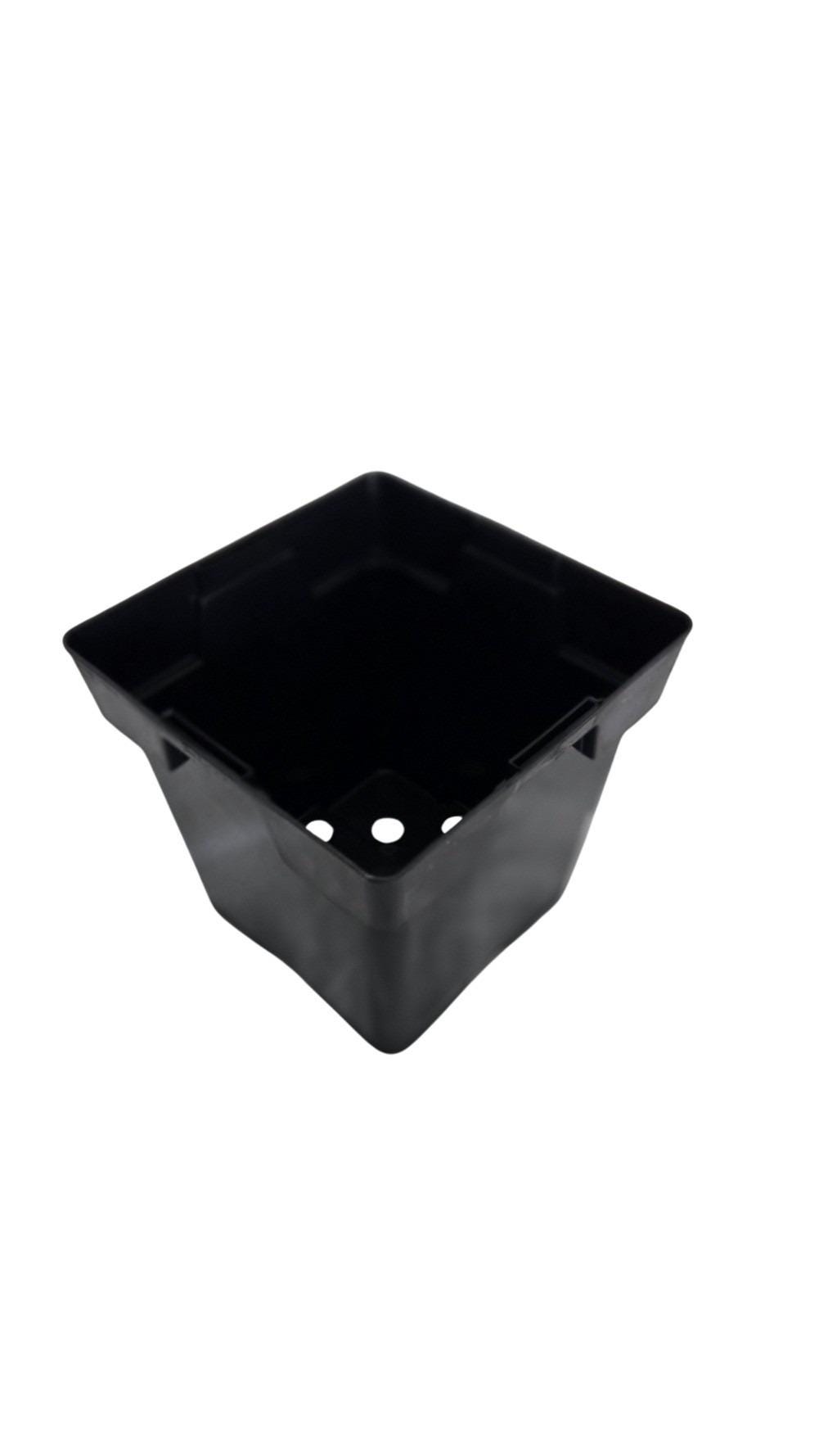 Set of new black plastic pots5.25'' square at top; 5.25" deepVolume: 1.71 quarts;Press Fit PotHeavy duty with rigid sidesWill last for several growing seasonsManufactured in the USA by Beldin Plastics