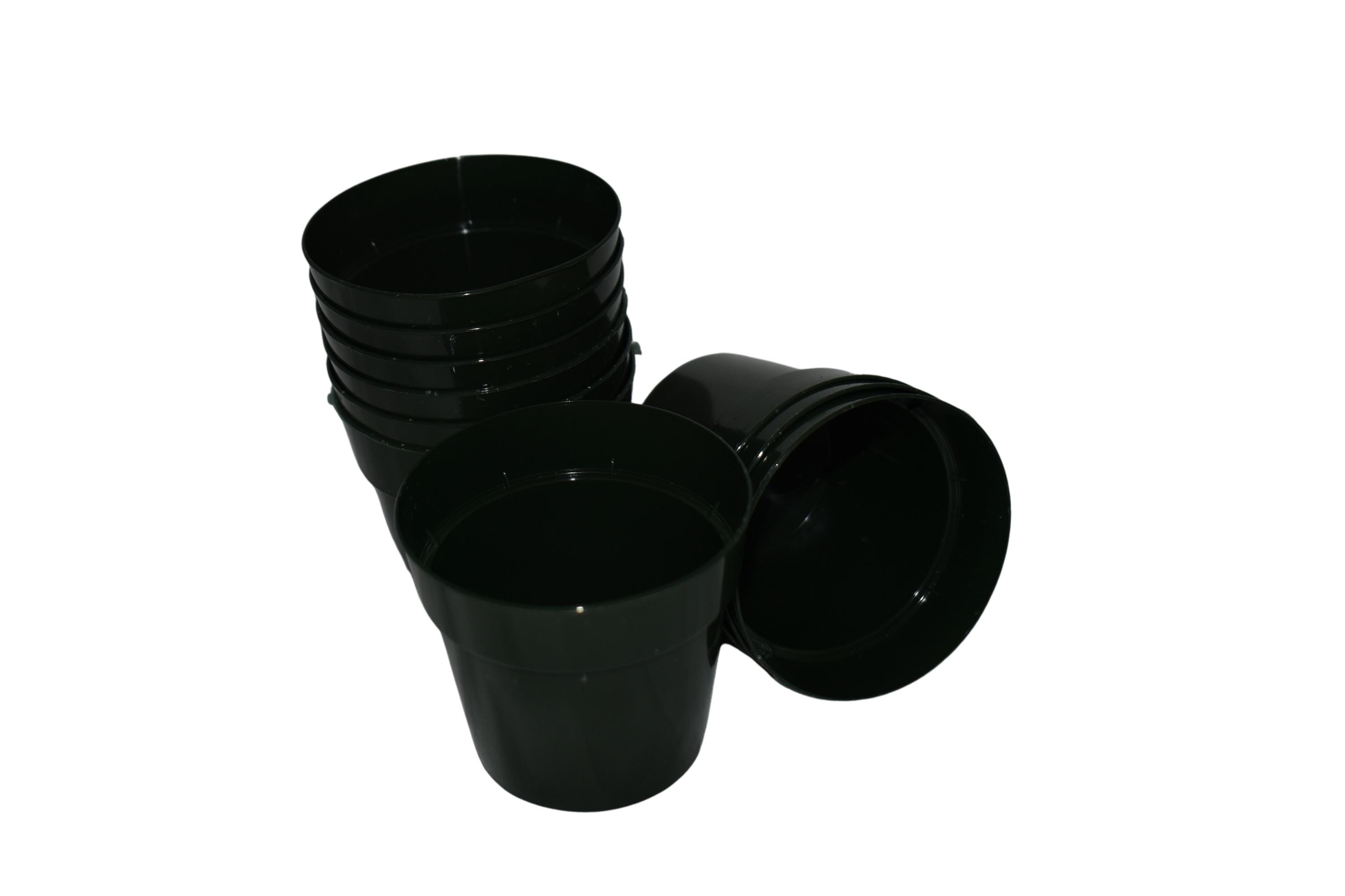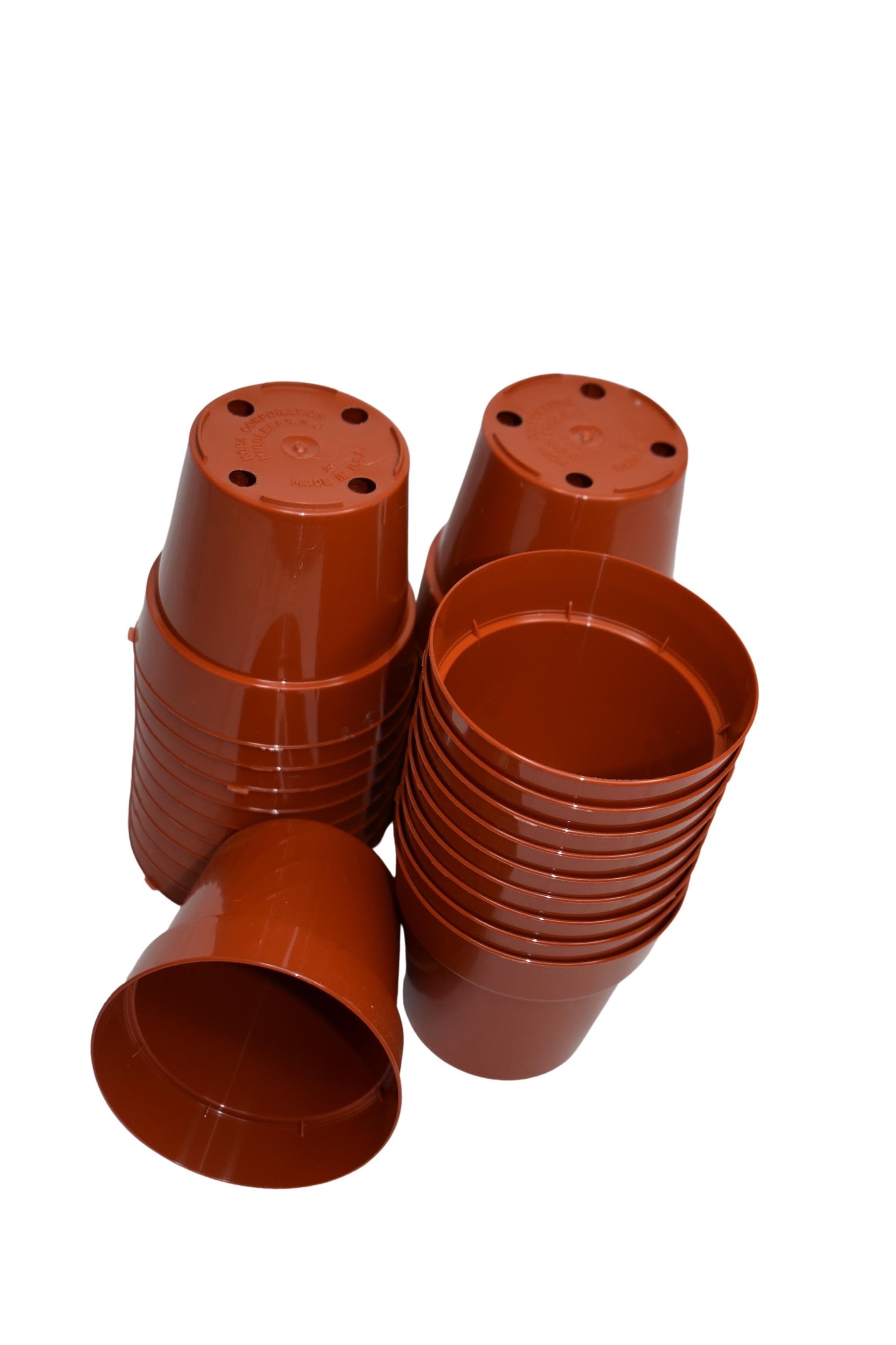 3" diameter x 2.75" highSmall Pots Perfect for seedlings and succulentsSet of 30 hard-sided light pink plastic greenhouse potsManufactured in the USA by Koba Plastics